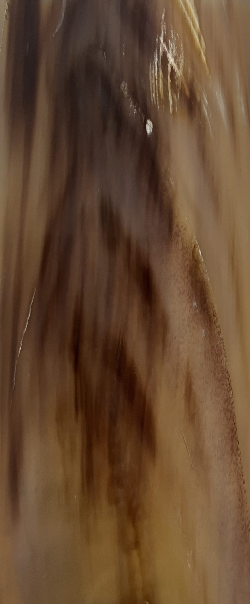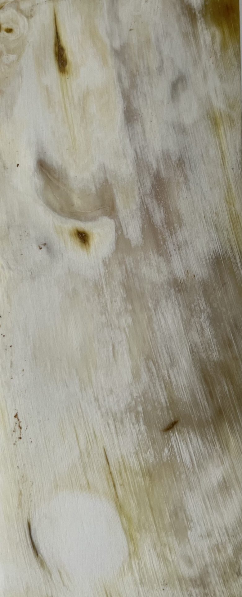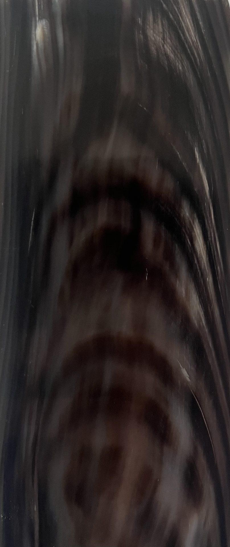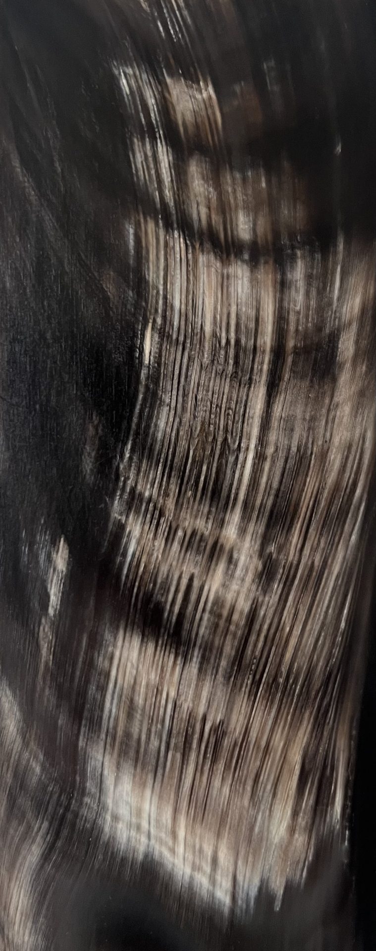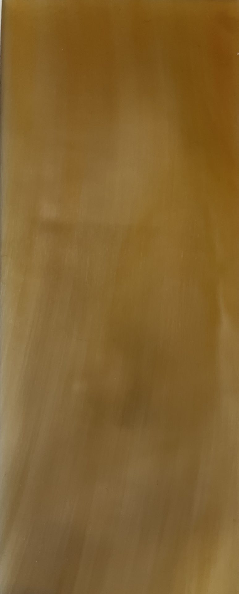 Allant du noir jusqu’au blond, chaque couleur de plaques en corne possède sa propre nuance par sa teinte, ses veinures et sa transparence. Ce matériau remarquable laisse passer la lumière qui souligne un aspect boisé élégant.